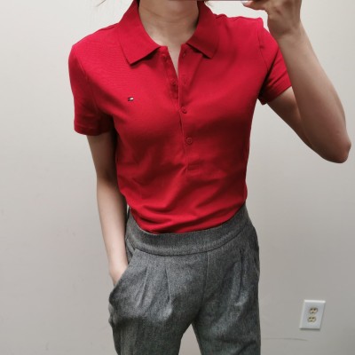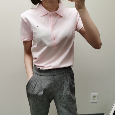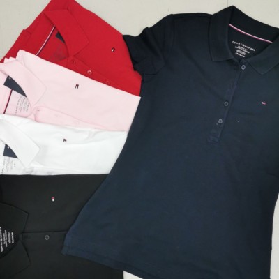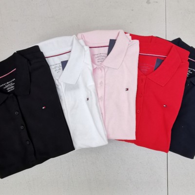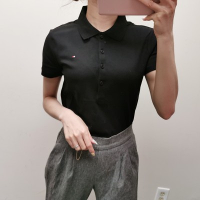 Tommy Hilfiger四排扣网纹纯色短袖Polo风T恤
