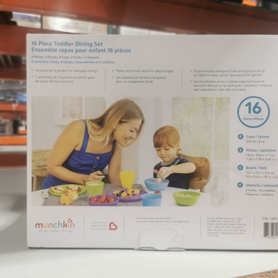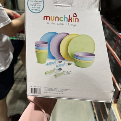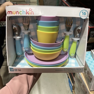 【本周折扣】Munchkin宝宝儿童餐具,盘碗杯刀叉,防摔防烫16件套。含4个盘子,4个碗,4个杯子,2把勺子,2把叉子。无毒无害,材质安全放心,色彩鲜艳,男女宝宝都适合,作为礼物送人也不错。绚丽色彩,开发宝宝视力,吸引宝宝注意;防摔设计,训练宝宝自主进食;不含BPA,食品材质,安心每一口,绝对可以让宝贝每天都有新鲜感。