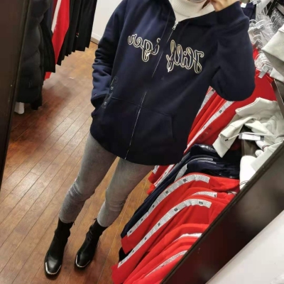 Tommy 女款经典内里带毛的开衫卫衣