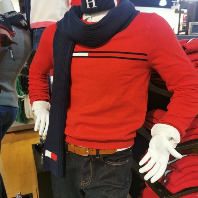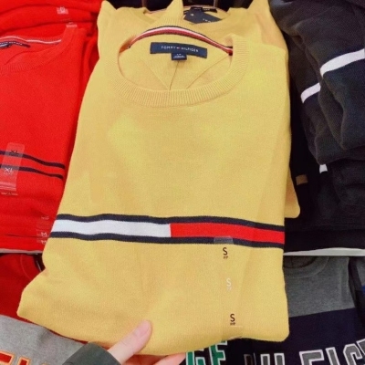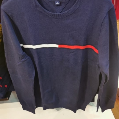 Tommy 秋冬男士纯色针织圆领LOGO套头毛衣针织衫